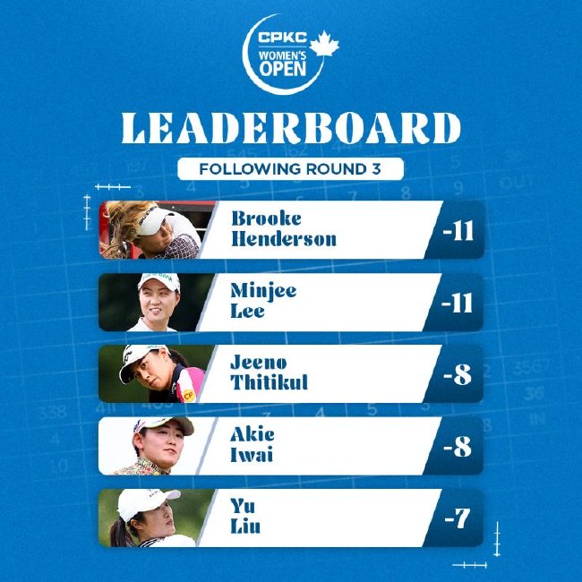 北京时间8月24日,加拿大球星布鲁克-亨德森在第17洞,短四杆洞,从果岭边沙坑直接切球入洞拿下老鹰,引爆主场观众欢呼浪潮。周六她在微风多云条件下交出65杆,低于标准杆6杆,与李旻智并列领跑CPKC加拿大女子公开赛。 这位2018年在萨斯喀彻温省