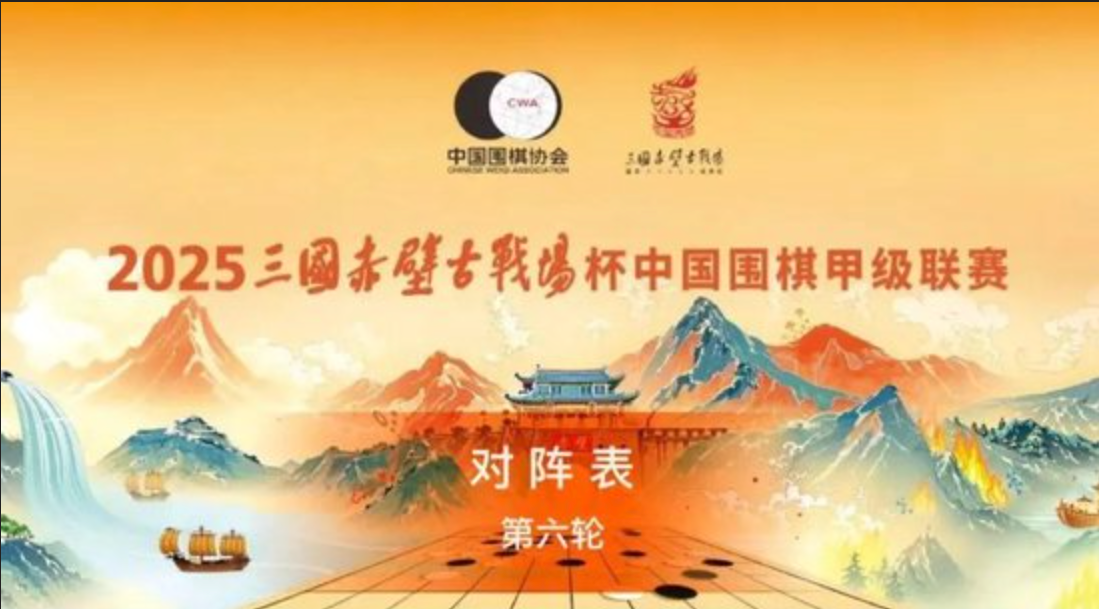 来源:中国围棋协会 2025三国赤壁古战场杯中国围棋甲级联赛将于8月27日在四川成都、福建福州、河南洛阳、江苏盐城、浙江宁波、安徽黄山、贵州遵义各主场进行第六轮比赛。以下为具体对阵: