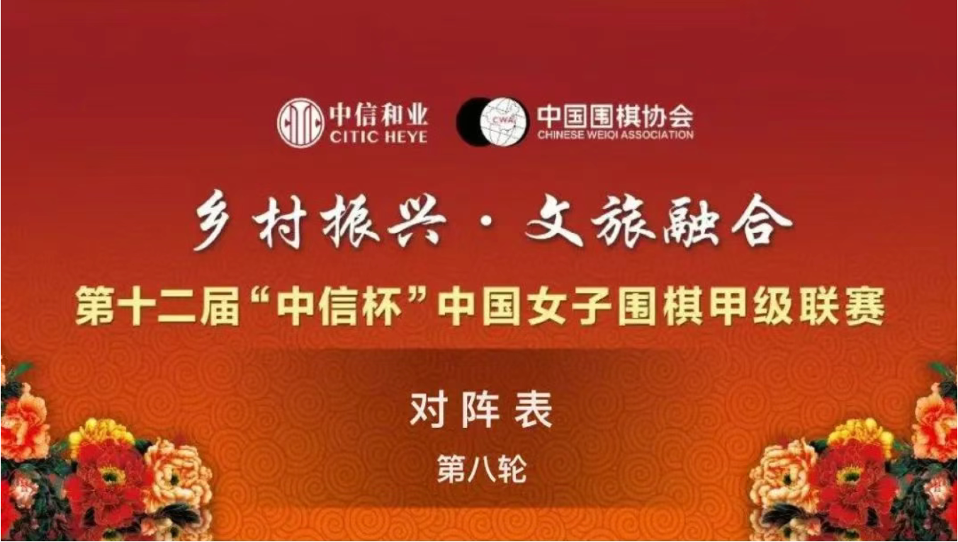 第十二届“中信杯”中国女子围棋甲级联赛将于8月26日在上海、浙江杭州、四川成都、江苏无锡展开第八轮比赛。具体对阵见下: