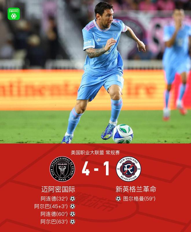 北京时间10月5日,美国职业足球大联盟常规赛展开较量,迈阿密国际坐镇主场迎战新英格兰革命。比赛中,迈阿密国际率先打破僵局,阿连德接梅西助攻率先取得进球。随后梅西再次送出精准传球,帮助阿尔巴扩大比分。上半场结束前,阿尔巴在梅西的又一次助攻下完成破门