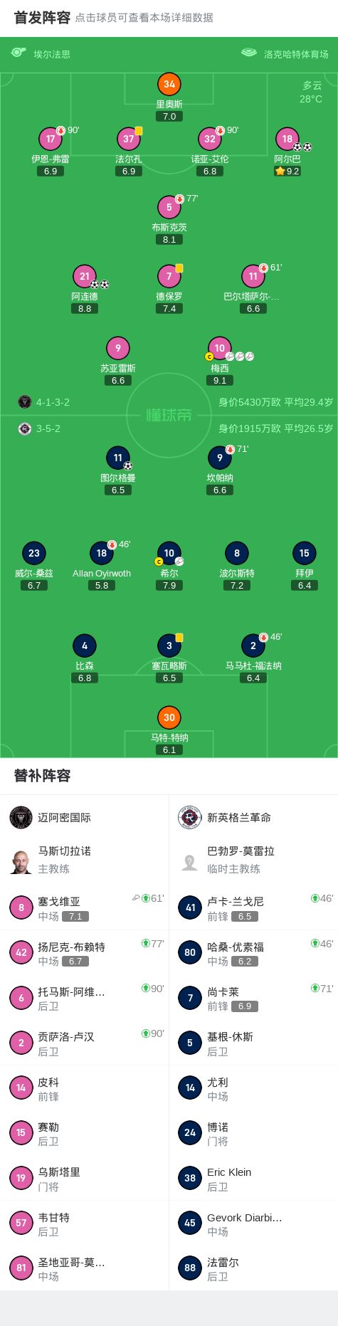迈阿密4-1新英格兰革命,梅西三送助攻,阿尔巴、阿连德双响