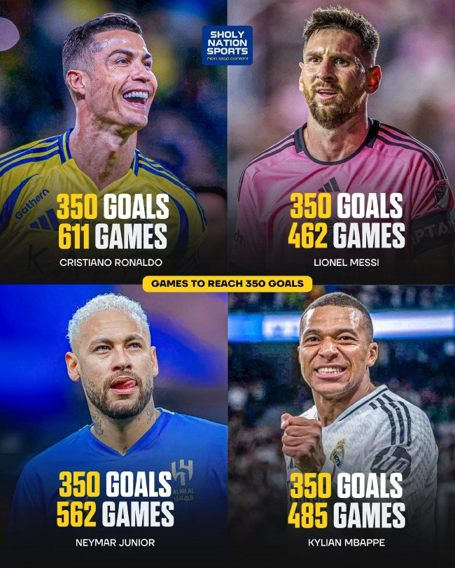 梅罗内姆四人350球时出场次数 梅西最少姆巴佩第二 北京时间1月24日,欧冠第七轮,皇马5比1大胜萨尔茨堡。本场比赛姆巴佩再度破门,职业生涯进球数达到了350球。 赛后,数据统计显示:梅西,C罗,内马尔和姆巴佩,四人职业生涯打进350球时的比