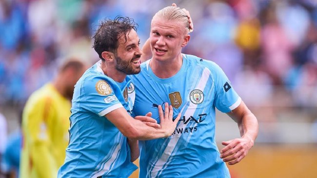 哈兰德(右)升至金靴赔率第一 北京时间6月27日,2025世俱杯小组赛全部战罢。目前的世俱杯射手榜中,有5名球员分别打入3球并列榜首,它们分别是拜仁的奥利塞和穆西亚拉、尤文的伊尔迪兹、本菲卡的迪马利亚以及已经被淘汰的开罗国民队阿里。而根据最新的
