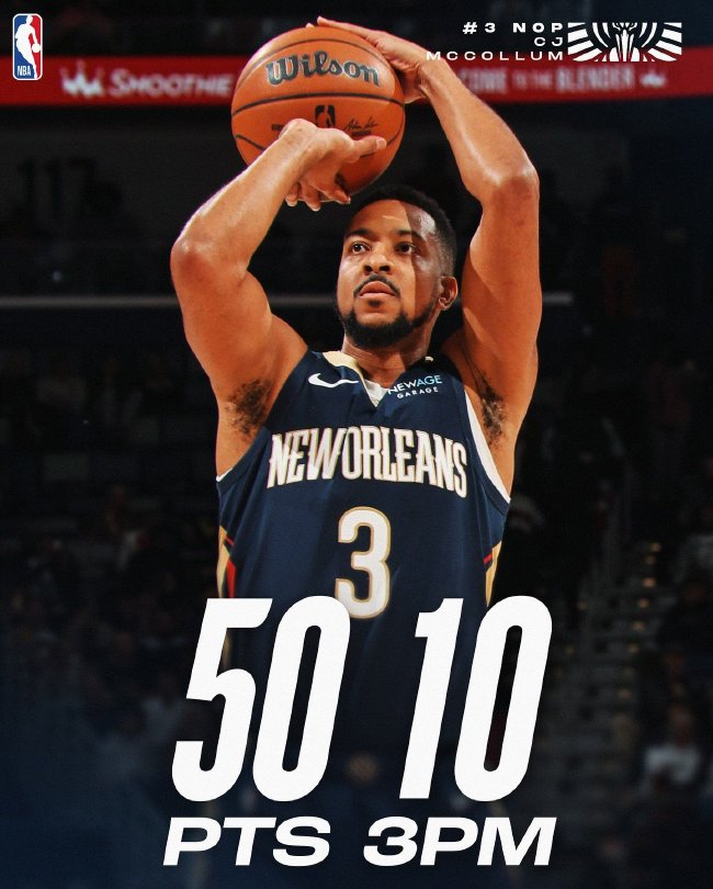 北京时间1月4日,NBA常规赛,以下是两场比赛的综述。 鹈鹕132-120力克奇才 鹈鹕(6-29):麦科勒姆50分、墨菲17分5篮板5助攻、波士顿13分、米西12分11篮板、穆雷11分12助攻、琼斯10分6助攻 奇才(6-26):普尔26