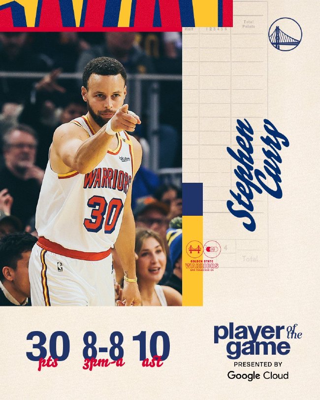北京时间1月3日,NBA常规赛,勇士139-105大胜76人,勇士升回西部第九。 勇士(17-16):库里三分球8投8中轰下30分6篮板10助攻、库明加20分5篮板5助攻、维金斯15分7篮板4助攻、格林15分6篮板7助攻3盖帽、施罗德15分5篮
