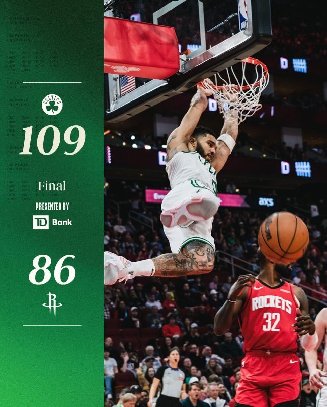 北京时间1月4日,NBA常规赛,以下是两场比赛的综述。 凯尔特人109-86大胜火箭 凯尔特人(26-9):塔图姆20分6篮板5助攻、怀特23分4篮板、普理查德20分4篮板、霍勒迪14分4篮板3助攻、波尔津吉斯11分5篮板、科内特9分10篮板