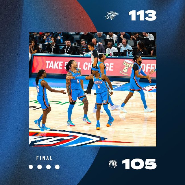 北京时间1月1日,NBA常规赛,以下是两场比赛的综述。 雷霆113-105力克森林狼 雷霆(27-5):亚历山大40分3篮板、哈滕15分10篮板、杰伦-威廉姆斯14分7篮板7助攻、多特14分7篮板 森林狼(17-15):爱德华兹20分7篮板