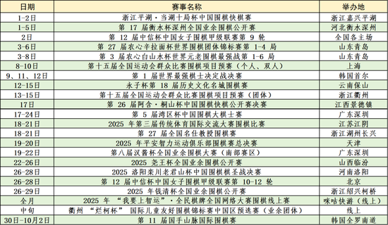 中国围棋协会发布了9月围棋赛程,农心杯将于月初在青岛打响第一阶段,此外,棋圣战、阿含桐山杯都将迎来决赛阶段的比拼。 2025年9月国际赛事、全国赛事赛程如下: