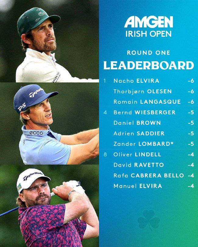 北京时间9月5日,纳奇欧-埃尔维拉(Nacho Elvira)、托比约-奥利森(Thorbjorn Olesen)和罗曼-兰加斯克(Romain Langasque)在爱尔兰公开赛第一天的比赛之后并列领先。在没有完毕的第一轮,埃尔维拉见到弟弟曼威