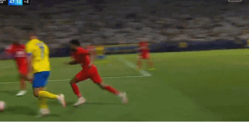 第45分钟,C罗凌空侧身打门被对方挡出底线,C罗投诉对方手球,但傅明并没有表示。