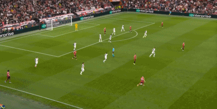 但是在半场回来之后,我们没有看到曼联的变化,球队依旧在按照首发思路进行处理,这一点在下半场初段依然可以理解,因为一来是曼联确实可以通过传切配合进入右肋: