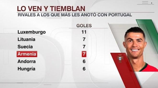 而将时间线拉长,C 罗对阵不同国家队的进球榜单更显震撼:他对立陶宛、瑞典、亚美尼亚均攻入 7 球,对安道尔、匈牙利各入 6 球,其中对卢森堡的 11 球更是冠绝榜单。