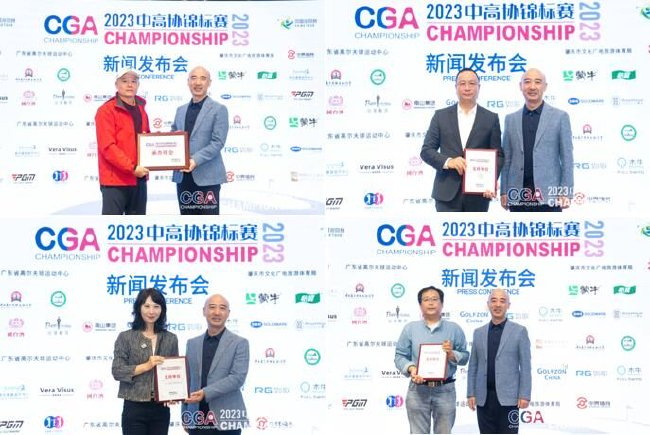 发布会现场,中国高尔夫球协会竞赛部部长李今亮代表赛事组委会为支持单位肇庆市高尔夫球协会,承办球场广东臻湖高尔夫球会,赞助商代表瑞合康复、光维科技授牌,以感谢社会各界对中国高尔夫球运动的支持。
